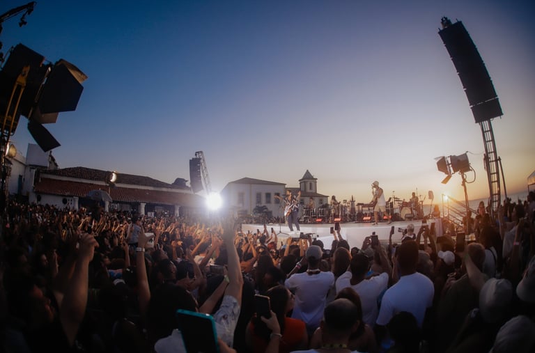 Estrutura montada para o evento Por do Sol na Ponta do Maitá. Montagem de palco e torre de boxtruss.